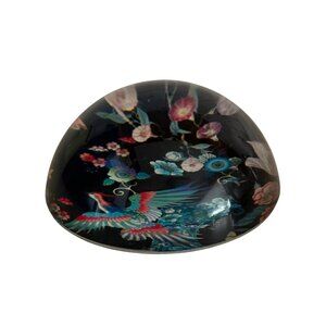 Crystal Glass Dome Paperweight With Floral & Phoenix Design Black Background
