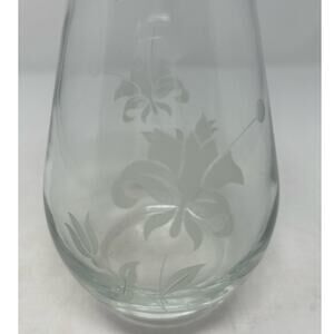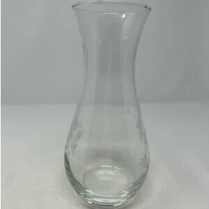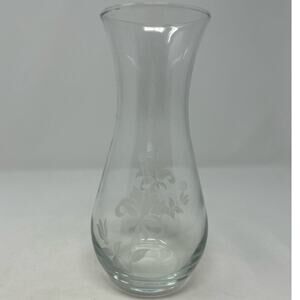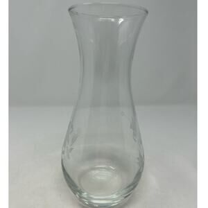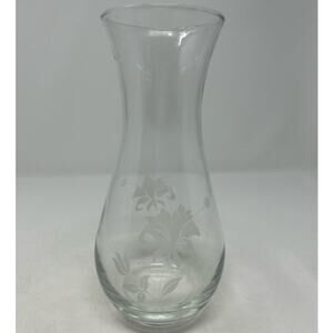 Clear Glass Etched Floral Vase 8" Tall x 3" Opening x 5" Wide