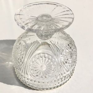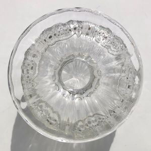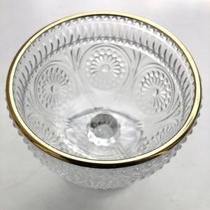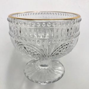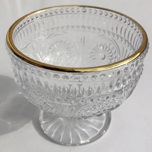 Clear Glass Footed Dessert Bowl Flower Embossed clear with metallic gold rim