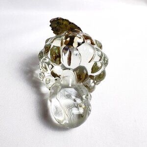 Clear Glass Grapes Sculpture Brass Leaf Mid-Century Modern Vintage Paperweight