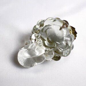 Add a touch of retro glamour to your space with this stunning vintage glass grape cluster, featuring crystal-clear berries and a sculpted brass leaf. Popular in the 1960s and 1970s, used as coffee table accent, bar cart decor, or bookshelf styling piece.