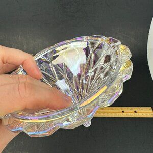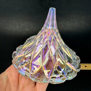 Clear Glass Iridescent Crystal Hershey Kiss Textured Trinket Candy Dish w Lid