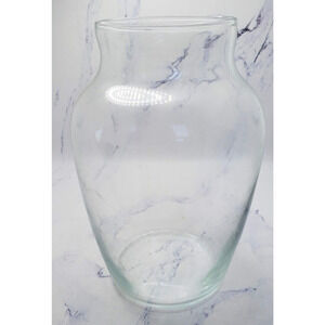 Clear Glass Pear Shaped 8 Inch Flower Vase With Wide Top Height 8 Inches Width 6 Inches
