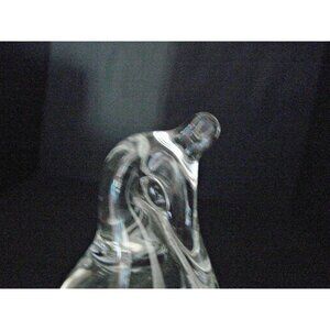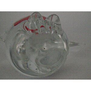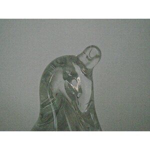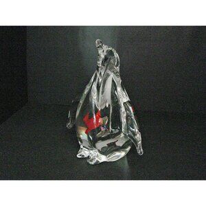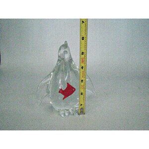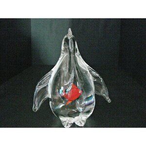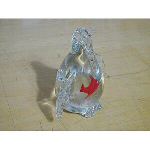 Clear Glass Penguin Figurine with Red Fish Inside Belly Artisan Paperweight Deco