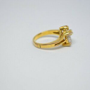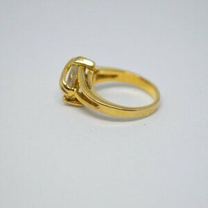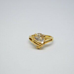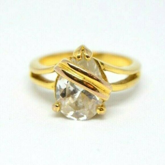 Clear Glass Rhinestone Pear Cut Solitaire Gold Tone Ring Size 6.25 Very little wear 12 by 9mm