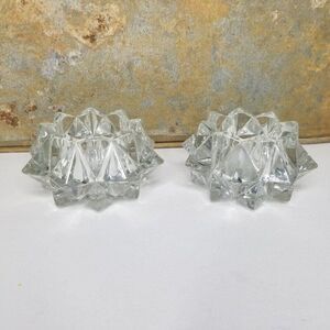 Lovely vintage clear glass Starburst Candle Holders. Set of 2. votive Lights.