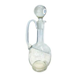 Elevate your entertaining with this beautiful etched clear glass wine decanter, complete with a round stopper and elegant handle. The floral and vine pattern etched into the bulbous body adds a delicate vintage charm, perfect for special occasions or decorative use.