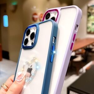 Clear Glitter Case For iPhone 14 Pro Max, Rhinestone Heart Clear Case, 6.7 Inch