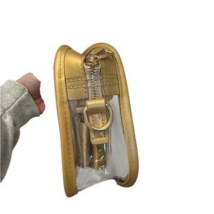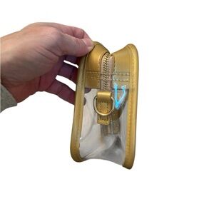 Stylish clear crossbody bag with gold trim. Perfect for travel or daily use.