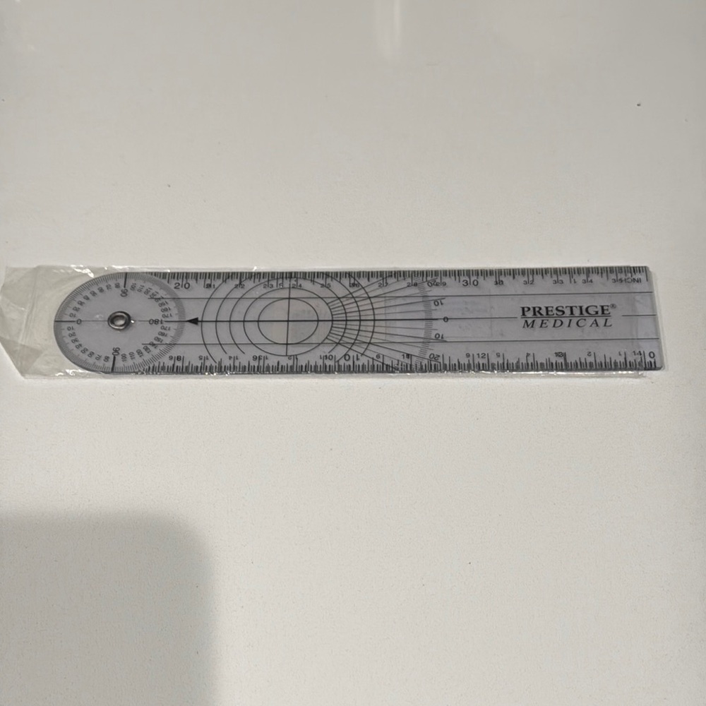 Clear goniometer ruler with precise measurements. Ideal for medical use.