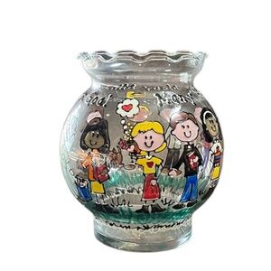 Clear Ivy Bowl Ruffled Hand Painted Vase "MANY HANDS, MANY MINDS... ONE GOD" NEW