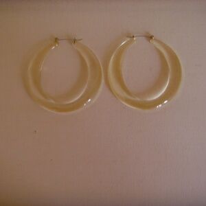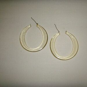 Clear Lucite Hoop Earrings (Pierced) measuring 2.5 inches across. Wires are silver-tone. Very good pre-owned condition with no issues noted.