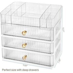 Clear Makeup Organizer 3 Drawer Vanity Storage Box Skincare Cosmetic Holder