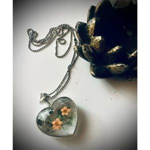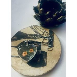 Very pretty and unique hand-painted pink flower heart bottle necklace. Durable item with a unique presence and can hold ashes to remember the good times. Larger pendant with style and personality. Comes with a chain NWT #glassheartnecklace, #heartbottlenecklace, #heartnecklace, #heartjewelry, #heartflowernecklace