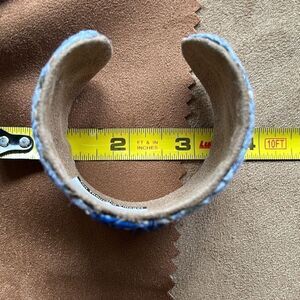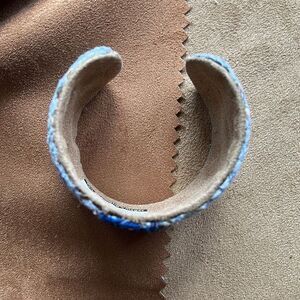 Clear Path Cuff Bracelet Handcrafted in India. Blues with specks of green and brown.