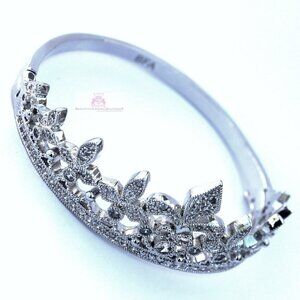 Clear Pave Cubic Zirconia Fleur-de-Lis Princess Crown Hinged Cuff Bracelet 7.5"