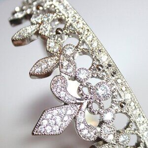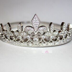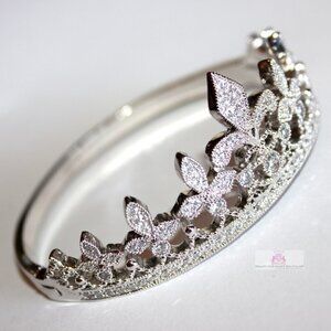 Clear Pave Cubic Zirconia Fleur-de-Lis Princess Crown Hinged Cuff Bracelet 7.5"