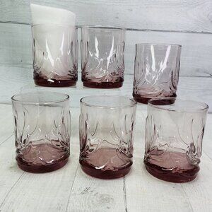 Clear Pink Tint Embossed Leaf Fan Design 16oz Double Old Fashion Glasses Set 6