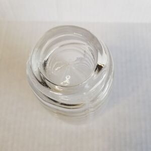 Beautiful clear pressed glass vase with a pretty frosted floral rim!