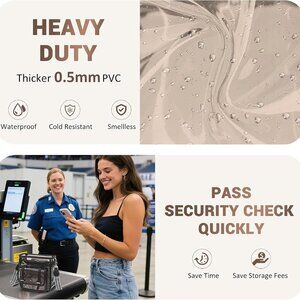 Sturdy Structure: The see through bag is made of water resistant, heavy duty 0.5mmPVC, pu leather combined with the plastic boning core and reinforced stitching, bearing the light rain, keeping it original shape, won't tear easily.