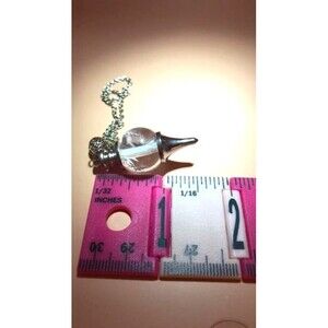 Clear Quartz Pendulum measures about 1 3/4 inches and the chain is about 8 inches with small bead at the end. Chain can be removed if you choose.