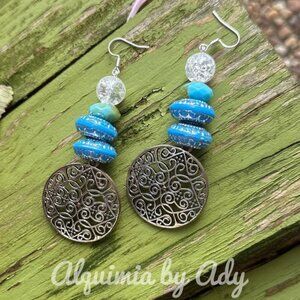 Clear Quartz oversized extra long mandalas silver statement dangle earrings