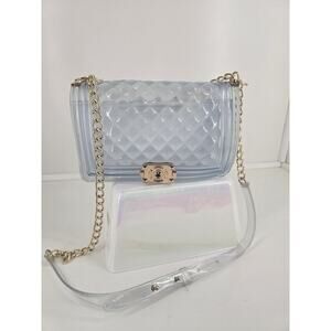 Add a touch of trendy elegance to your outfit with this clear quilted jelly crossbody purse.