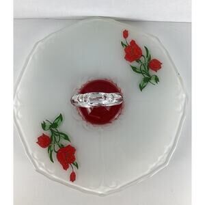 Clear Red Cake Plate Tulip Indiana Glass Painted Tidbit Tray with Key Handle
