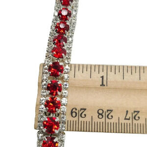 Clear Red Rhinestone Stone Slide Link Bangle Bracelet Silver Tone Vintage