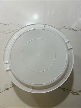 Reusable clear cake container with lid. Designed for transporting and storing cakes. Lightweight and practical for parties.