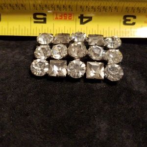 Rectangular brooch with clear rhinestones on a silver backing.