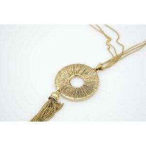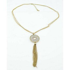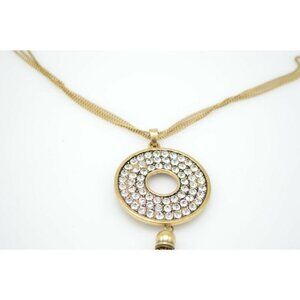 Clear Rhinestone Circle Dangle Medallion Chain Link Pendant Necklace