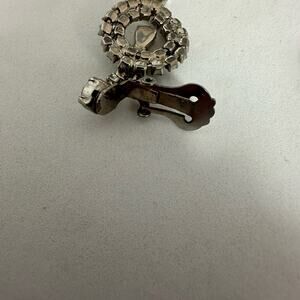 Clear Rhinestone Circular Drop Earrings Clip On Wedding Prom Bling Mid Century