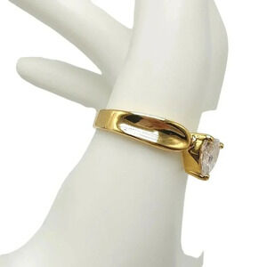 Clear Rhinestone Heart Shaped Gold Vermeil Over Sterling Silver Ring Size 8.5