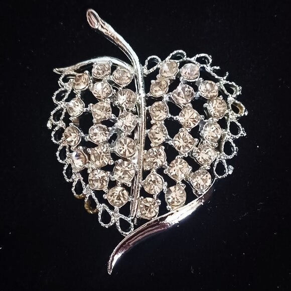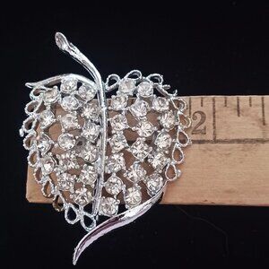 This rhinestone leaf shaped brooch is stunning, and purchased at an estate.