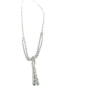 Clear Rhinestone Necklace Vintage Two Strand Bib Style Choker Dangle Drop Pendan