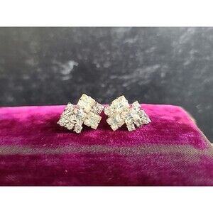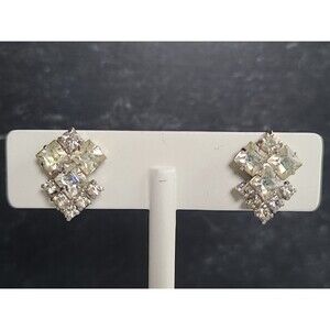 These are a vintage pair of silver tone metal screwback earrings with prong set clear rhinestones.