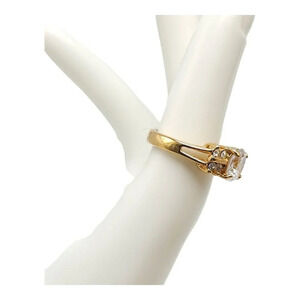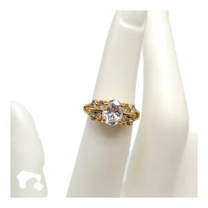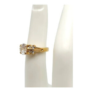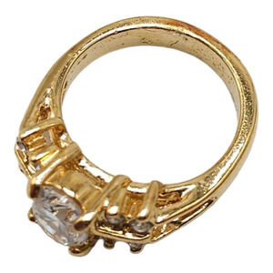 Clear Rhinestone Two Row Cocktail Ring Gold Tone Vintage Size 5
