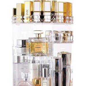 Keep your space tidy with this clear rotating organizer. Perfect for storing cosmetics, toiletries, and more. Its transparent design allows easy visibility of contents.