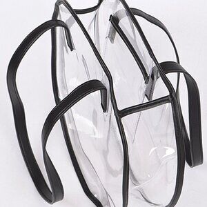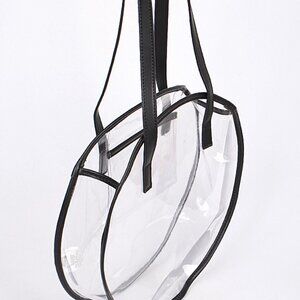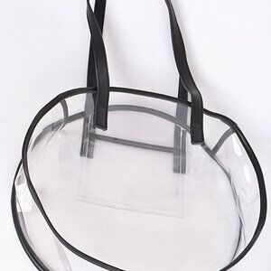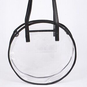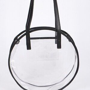 Clear Round Shoulder Bag /Tote Bag- W/ Black Accents/Straps & Pocket - NWT