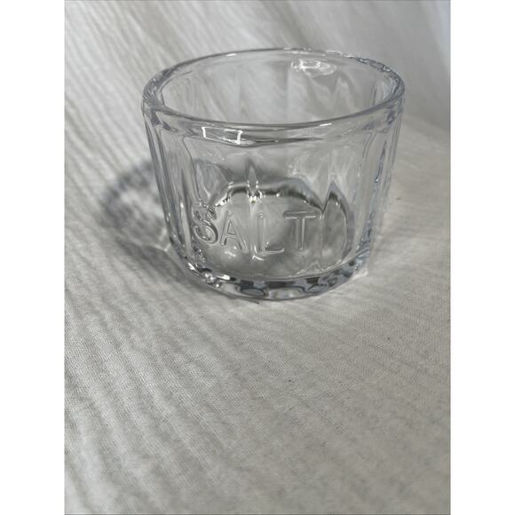 This clear glass "Salt" cellar is a must-have for any kitchen or dining room. With a ribbed pattern and round shape, this open salt has a unique and elegant design that will complement any table setting. It has a capacity of 8 oz and is perfect for storing salt or other spices. The glossy finish adds to its beauty and the American style makes it a great addition to any collection. Measuring less than 4 inches in diameter and 2 inches in height, this medium-sized salt cellar is easy to use and store. It weighs 13 oz and is made of high-quality glass material.