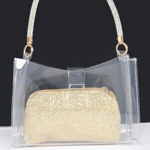 Clear Small Hobo Bag W/rhinestone Handle
