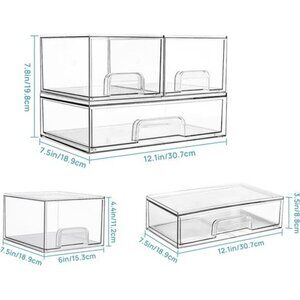 Clear Stackable Storage Drawers Set Makeup Organizer Bathroom Cabinet Bins