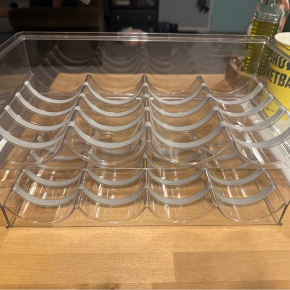 Organize your water bottle collection with this sleek, clear stackable water bottle rack. Perfect for any kitchen or dining room.