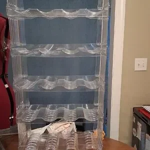 Organize your wine collection with this clear stackable wine rack. Its transparent design fits seamlessly into any decor, providing a sleek and modern look.