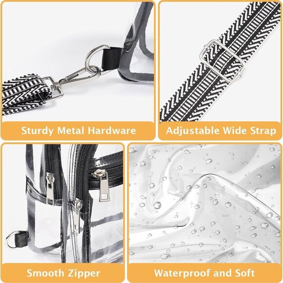 Great for: Attending sports games, concerts, festivals, or any event with stadium security regulations. Also perfect as a casual, clear crossbody or belt bag to match any outfit.