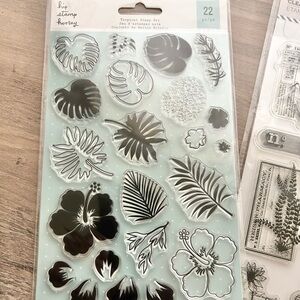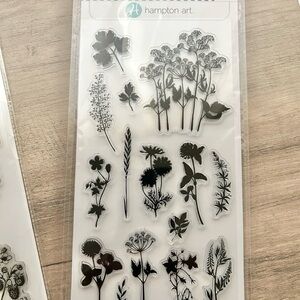 Lot of 3 clear stamp collections and clear mounting block. Hip Stamp Hooray and Hampton Art. All brand new, never used. Clear stamps, leaf stamps, botanical stamps