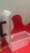 Transparent storage box with a sturdy black handle. Ideal for organizing.