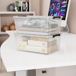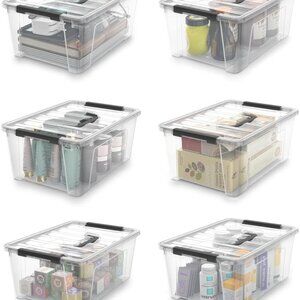 Clear Storage Latch Bins, 6-Pack Storage Organizer Box with Handle and Lids, 5-L