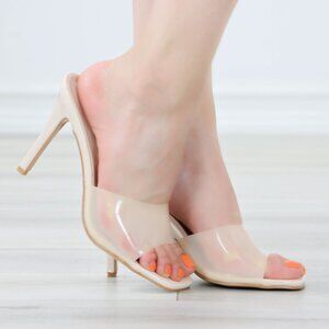 Clear Strap Nude Heels Open Toe Slip-On Stiletto Sandals